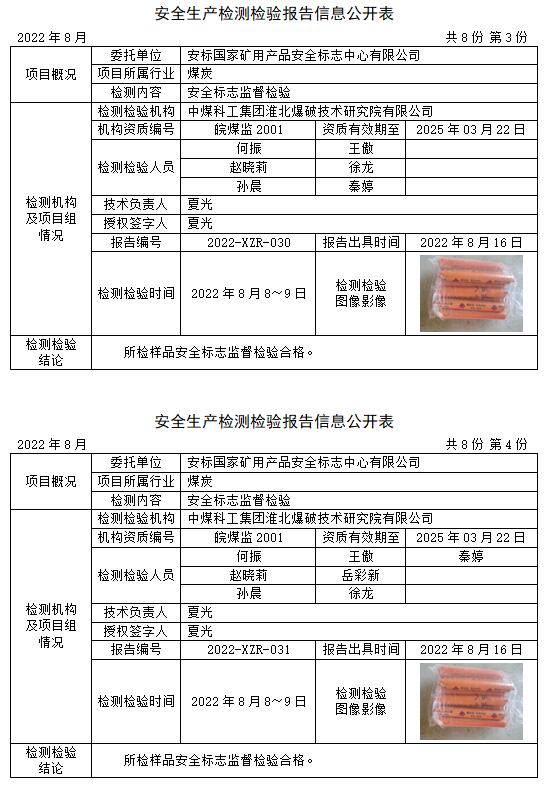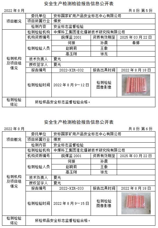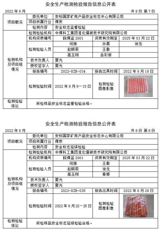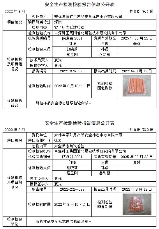 安全生產(chǎn)檢測(cè)檢驗(yàn)報(bào)告信息公開表(2022年8月)